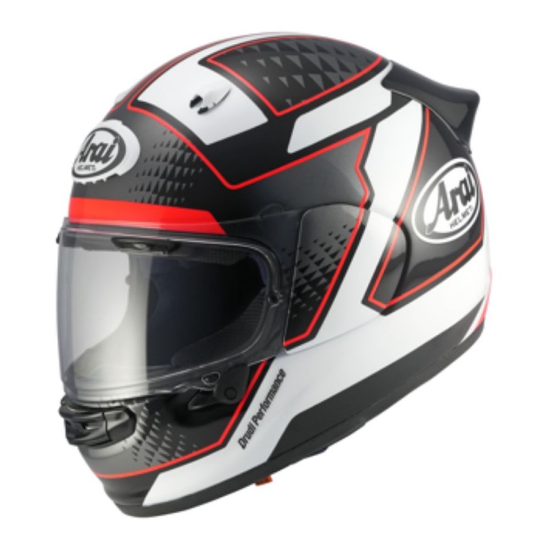 Casco ARAI Quantic GIU rojo. Es el nuevo casco de motocicleta ARAI que cumple con los requisitos ECE R22-06 . La calota exterior está hecha a mano y se adapta a la forma natural de la cabeza humana. La superficie del casco está diseñada para ser lo más suave posible, lo que, entre otras cosas, permite un mejor deslizamiento. Durante el deslizamiento, el alerón se desprende, lo que no compromete la seguridad del casco. La calota interior está compuesta por 5 densidades diferentes de EPS, lo que permite una mejor absorción de energía del Quantic al combinar una calota exterior rígida y una interior blanda.