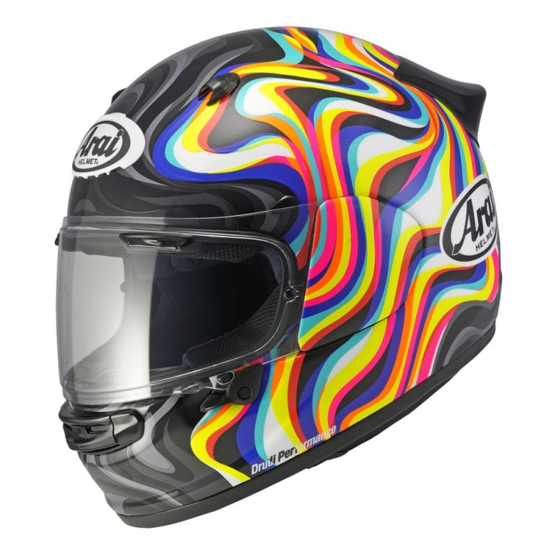 Casco ARAI Quantic SWIRL blanco. Es el nuevo casco de motocicleta ARAI que cumple con los requisitos ECE R22-06 . La calota exterior está hecha a mano y se adapta a la forma natural de la cabeza humana. La superficie del casco está diseñada para ser lo más suave posible, lo que, entre otras cosas, permite un mejor deslizamiento. Durante el deslizamiento, el alerón se desprende, lo que no compromete la seguridad del casco. La calota interior está compuesta por 5 densidades diferentes de EPS, lo que permite una mejor absorción de energía del Quantic al combinar una calota exterior rígida y una interior blanda.