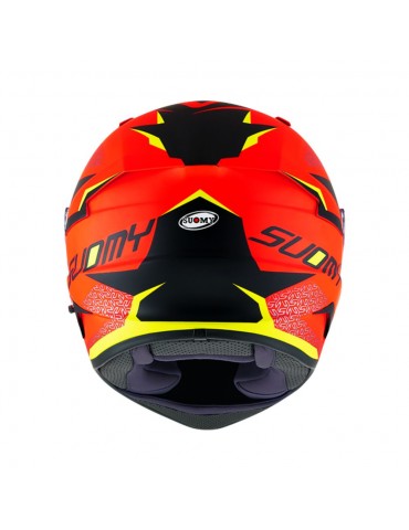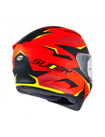 Casco SUOMY Speedstar Luminescence rojo mate. Speedstar es el nuevo casco integral de Suomy para una conducción de sport turismo de alto desempeño. Con más de veinte años de experiencia competición y las innumerables horas en el túnel del viento que Suomy ha dedicado, el Speedstar ofrece un diseño de calota exterior que garantiza una gran penetración aerodinámica y un genial equilibro general. Fabricado en Tricarboco, una avanzada composición de fibras (fibra de carbono, fibra de vidrio y aramida) que así como el EPS interior multidensidad, dan altos niveles de ligereza, resistencia y absorción de los impactos.