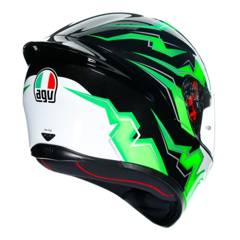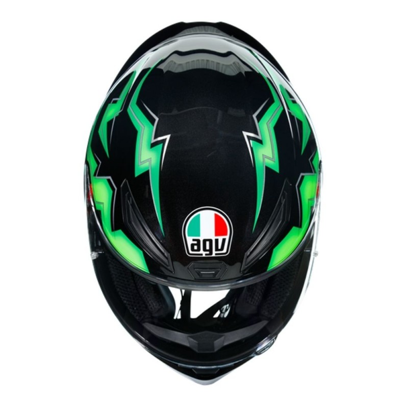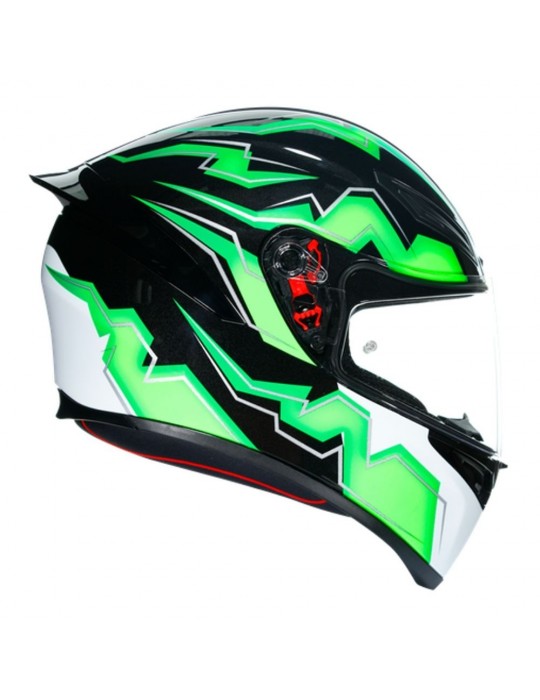 Casco AGV K1 S E2206 Kripton negro / verde. La manera aerodinámica, las rejas de ventilación frontales desarrolladas para la competición y el alerón probado en túnel de viento maximizan las posibilidades y dan estabilidad a grandes velocidades. La gorra panorámica antirayaduras ofrece un campo de visión más extenso, tanto lateral como vertical, para un control total del ambiente. Con los suaves y desmontables interiores Dry-Comfort, la comodidad está asegurada.