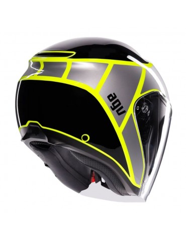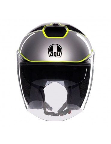 Casco AGV Irides E2206 Davao negro / gris / amarillo fluor. IRIDES es el nuevo casco abierto de AGV con homologación ECE2206, equipado con una visera Pinlock™ 70 Ready con cierre magnético. Ofrece un alto nivel de protección y confort en los desplazamientos urbanos cotidianos. Un casco con un diseño sobrio y moderno, muy cuidado en los detalles de la placa lateral, que presenta una visera alargada como protección, equipada con un mecanismo de cierre magnético VMS (Visor Magnetic System), para ofrecer la máxima estabilidad y confort incluso a altas velocidades. La visera, con preinstalación para la lente antivaho Pinlock® 70 (como accesorio) y el visor solar ajustable, garantizan una excelente visibilidad en todas las condiciones, tanto en días soleados como templados, cuando la diferencia de temperatura entre el ambiente y el interior del casco podría provocar un molesto empañamiento. El confort térmico del casco está garantizado por la toma de aire superior regulable y elextractor trasero, que facilitan el intercambio entre el aire caliente del interior del casco y el que procede del exterior. La configuración interna de Irides garantiza una excelente personalización del ajuste.