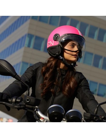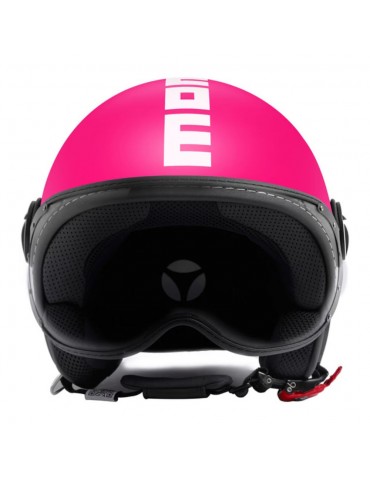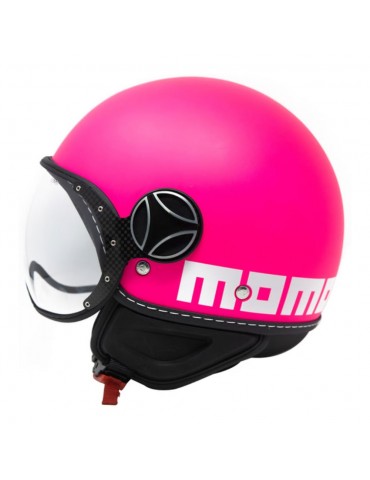 Casco MOMO FGTR Classic Candy Fucsia / blanco. Casco Semi-Jet urbano ideal para el motociclista metropolitano que busca un diseño único con detalles artesanales y técnicos. El diseño de este casco jet está inspirado por la forma de los cascos de helicóptero.