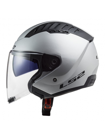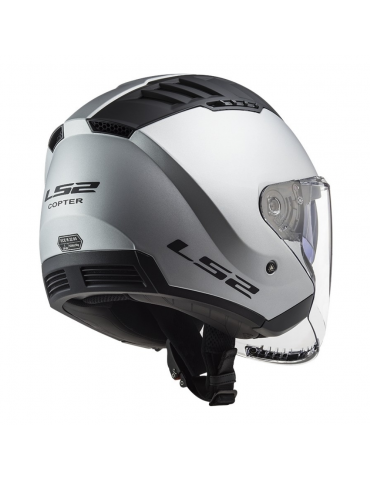 Casco LS2 OF600 Copter plata mate. Casco jet que ofrece dinamismo, comodidad y buena ventilación. Un casco diseñado para distancias cortas y recorridos por ciudad, que mezcla las características clásicas de un modelo urbano con las prestaciones de un casco integral gracias a su doble visera (exterior y solar). Dispone de una calota fabricada en termoplástico (HPTT), visor de policarbonato de Clase A de alta resistencia y un eficaz sistema de ventilación.