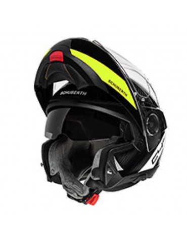 Casco SCHUBERTH C4 Pro Carbono AVIO amarillo brillo. Es un casco modular indicado tanto para largos viajes, para recorridos veloces.es un casco desarrollado y fabricado para ser un referente para los motoristas que demandan a sus productos un alto desempeño, uno de los Cascos Modulares más cómodos merced a su equipamiento interior y optimización acústica. Sin oscilación y con un nivel de estruendos bajísimo, al lado de la velocidad.