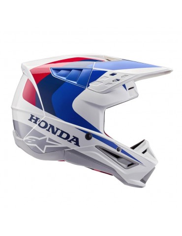 Casco ALPINESTARS Honda S-M5 ECE 22.06 blanco / azul / rojo brillante. El casco de cross Alpinestars Honda S-M5 está diseñado para proporcionar una protección óptima a los pilotos de motocross.