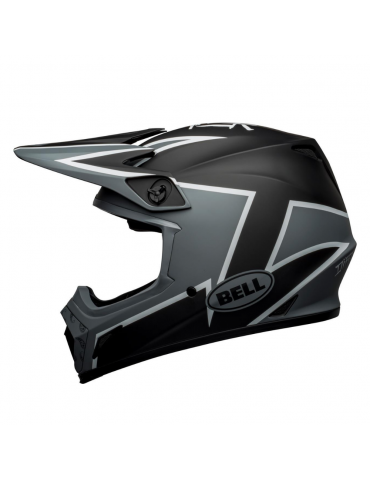 Casco BELL MX-9 Mips Twitch negro / gris. Casco de motocross nacido para los amantes de la tierra. Fabricado en policarbonato ligero, el casco Bell Mx-9 está disponible en tres tamaños de calota exterior para un mejor adaptabilidad y protección a cada cabeza. Incorpora un un sistema de ventilación que permite una circulación óptima de aire dentro del casco, ofreciendo así mayor confort y refrigeración al piloto. Como sistema de cierre utiliza el de anilla doble D, considerado el más seguro aunque algo menos práctico para abrir y cerrar.