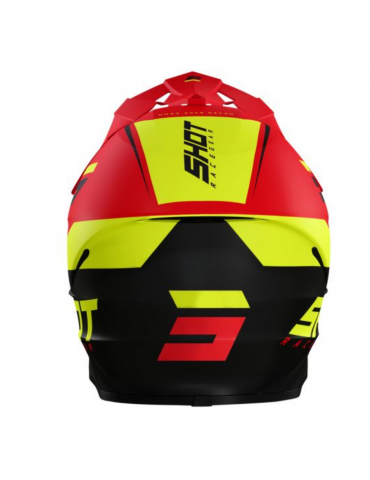 Casco SHOT Furious Chase rojo mate / amarillo neon. El SHOT Furious es un gran casco off-road de SHOT para motoristas de Motocross/Enduro. Los motoristas a los que les gusta montar off-road les conviene usar un casco off-road. Estos cascos están especialmente diseñados para ofrecer la mejor experiencia al manejar en tierra. Los cascos off-road cuentan con un orificio ocular más grande para acomodar un par de gafas MX. También tienen un gran pico para bloquear la luz del sol y protegerle de las ramas, y la amplia pieza de la barbilla ofrece más ventilación.