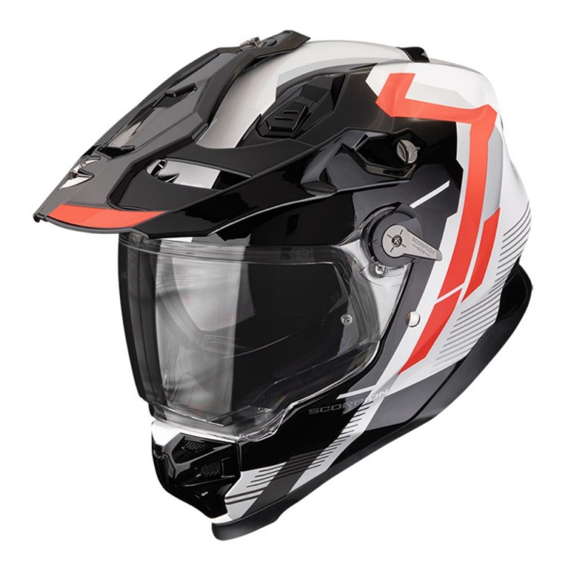 Casco SCORPION ADF-9000 Air Patrol negro / rojo. El nuevo ADF-9000 Air fue diseñado para satisfacer las demandas del conductor de aventuras serio al lograr el equilibrio perfecto de características y beneficios tanto dentro como fuera de la carretera.Cada casco está cuidadosamente elaborado a mano utilizando la última tecnología TCT Ultra, lo que proporciona una resistencia superior y un peso ligero.