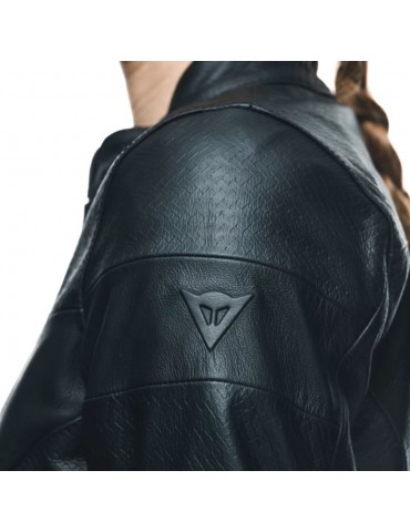 Chaqueta DAINESE Itinere Lady negro. Fabricada en suave piel bovina Federica con una textura refinada, la Itinere Leather Jacket WMN es una chaqueta de moto dedicada a las motociclistas más exigentes.