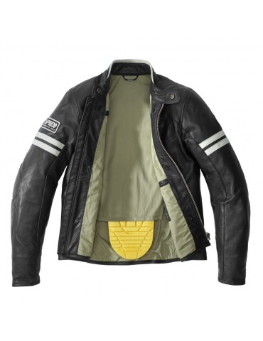 Chaqueta SPIDI Vintage hielo / negro. Ofrece toda la protección y el estilo de una chaqueta de motociclista de cuero tradicional, con el beneficio adicional de la comodidad del cuero encerado italiano original, un material con una suavidad y un aspecto incomparables.