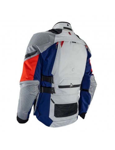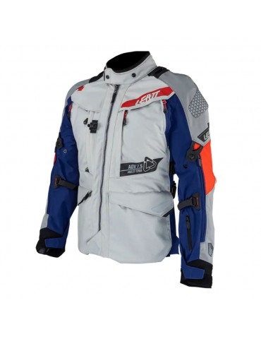 Chaqueta LEATT ADV MultiTour 7.5 Royal. Es una chaqueta resistente para todas las estaciones que incorpora protección contra impactos. Se puede usar de 6 maneras diferentes gracias a la capa exterior ligera y ventilada, el forro térmico extraíble y el forro impermeable HydraDri MAX extraíble. Tanto la capa interior como la exterior se pueden usar de forma independiente como chaquetas ligeras e informales, ya sea como aislamiento o como protección impermeable. Esto permite que la chaqueta se adapte a cualquier cambio climático para que puedas continuar tu viaje con seguridad y comodidad.