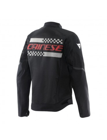 Chaqueta DAINESE Herosphere Air Tex negro / blanco stripes / rojo. La mezcla perfecta de protección y máxima ligereza, Herosphere Tex Jacket es una chaqueta de moto ventilada ideal para salidas en moto con tiempo cálido. Con un diseño técnico a la vez que deportivo, esta chaqueta que cuenta con la certificación EN 17092 Clase A- integra protectores Pro-Armor suaves y ventilados en hombros y codos e integra bolsillos diseñados para alojar protectores de pecho y espalda. Para optimizar el confort y la ergonomía de conducción, la prenda incorpora sistemas de ajuste en muñecas y caderas y un bucle de conexión chaqueta-pantalón para evitar las desagradables corrientes de aire en la espalda durante la conducción, así como un práctico bolsillo interior impermeable para proteger el teléfono y los documentos en caso de lluvia.