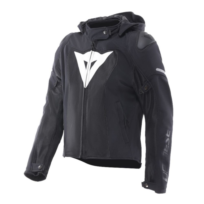 Chaqueta DAINESE Super Sprint Air Tex Lady negro / blanco. Chaqueta deportiva de moto para mujer, confeccionada en suave tejido Softshell con amplias inserciones de malla para garantizar la ventilación y la comodidad en los días más calurosos. Diseñada para salidas suburbanas y desplazamientos urbanos con una conducción dinámica en carretera.