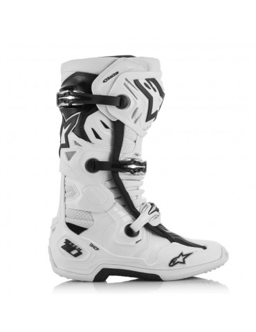Botas ALPINESTARS Tech 10 Supervented blanco. Las nuevas Tech 10 en su versión “Supervented” se identifican por agregar entradas de aire, acolchados horadados y zonas microperforadas para ofrecer una máxima ventilación. Incorporan soluciones técnicas patentadas como el Dynamic Heel Compression Protector (DHCP) o bien el nuevo sistema de control de movimiento a través de doble pivote que deja una movilidad incomparable. Todos y cada uno de los componentes de las nuevas Tech 10 han sido estudiados para ofrecer máximo desempeño y durabilidad. Son unas botas Off-Road perfectas en todos y cada uno de los sentidos.