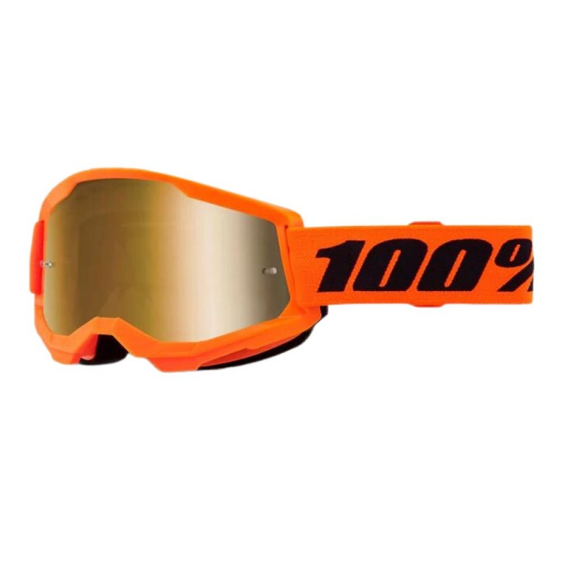 Gafas 100% Strata 2 neon naranja / oro espejo. Del trail a la pista, el Strata 2 ofrece un campo de visión casi ilimitado para nuestros mejores atletas y comodidad para el ciclista de todos los días.