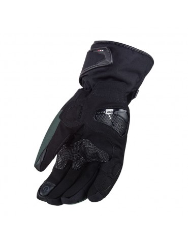 Guantes LS2 Snow Man Gloves negro / verde. Guantes textiles de motocicleta impermeables para el invierno con aislamiento, membrana Hipora® transpirable, aislamiento de calidad, protección para los nudillos duros, protectores de TPR en los dedos, comodidad superior, dedo índice compatible con pantalla táctil, limpiaparabrisas de la visera, detalles reflectantes.