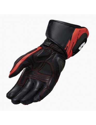 Guantes REVIT Quantum 2 rojo fluor / negro. Están confeccionados en cuero de alta calidad, dando un nivel inmejorable de seguridad y resistencia. Su construcción se complementa con inserciones de tejidos horadados para acrecentar la ventilación y recubrimientos de poliuretano para asegurar la durabilidad.