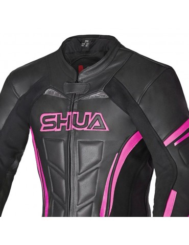 Mono SHUA 2 PC Infinity Lady negro / fucsia. Presentado en llamativos colores y meticulosamente diseñado para los entusiastas de las motocicletas. Promete una comodidad, flexibilidad y seguridad inigualables para los motociclistas.