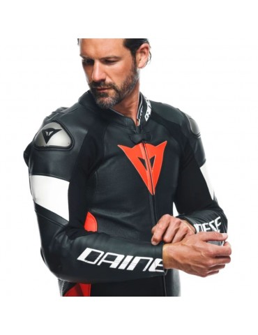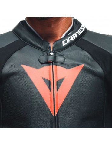 Traje cuero DAINESE Tosa 1 PCS PERF negro / rojo fluor / blanco. Mono para moto Dainese Tosa certificado según la norma europea CE EN17092, fabricado en una preciada piel bovina Tutu perforada para disfrutar del máximo confort térmico en los días más calurosos. El clásico fit de Dainese garantiza una hechura ceñida y ajustada pero a la vez una gran libertad de movimientos, gracias a las insertos de tejido elástico S1 en la parte interna de los brazos, las ingles y la parte posterior de la pernera. Los insertos elásticos biaxiales en la espalda y la elasticidad en las rodillas y omóplatos están diseñados para garantizar toda la protección de la piel y al mismo tiempo la máxima flexibilidad y libertad de movimientos. Este sistema de protección especial combina las clásicas protecciones internas de Dainese con deslizadores extraíbles en las rodillas y placas de aluminio intercambiables en los hombros: una tecnología distintiva de Dainese, diseñada para apoyar y facilitar el deslizamiento en caso de caída y evitar riesgos de peligrosas volteretas causadas por el agarre al asfalto.