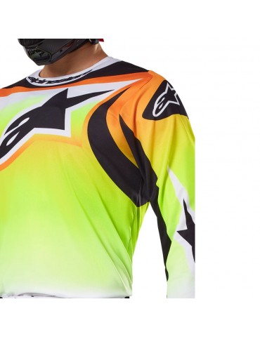 Jersey ALPINESTARS Fluid Wurx amarillo / negro. La línea Fluid ofrece a los pilotos de MX recreativos un equipamiento con una tecnología MX óptima que aprovecha las características de construcción clave de las líneas Supertech, Techstar y Racer para ofrecer un aspecto y una sensación de rendimiento total optimizados para la comodidad y la funcionalidad de conducción. Desarrollada y probada en algunos de los terrenos más duros del mundo, la equipación Fluid de ajuste deportivo es ideal para muchas formas de conducción off-road.