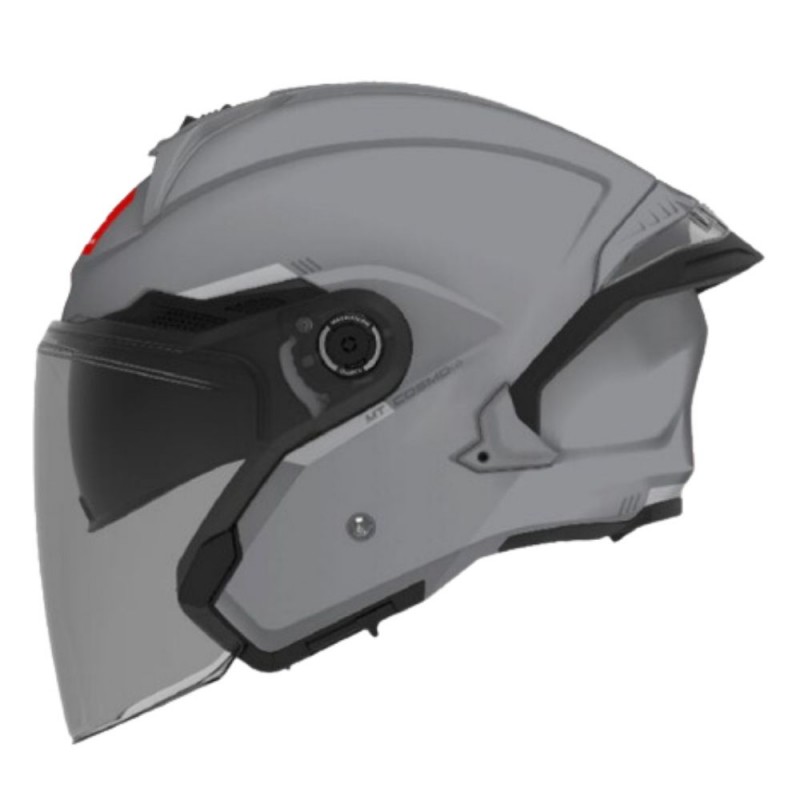 Casco MT OF515SV Cosmo SV Solid A2 gris brillo. El nuevo MT CosmoSv es un modelo Jet que se ha diseñado con las últimas tecnologías desarrolladas por la marca. El diseño de la calota también está alineado con las últimas creaciones de MT que están cosechando grandes éxitos comerciales pero que, lo que es más importante, están dando excelentes resultados en cuanto a niveles de seguridad. Es, por supuesto, un modelo homologado por la ECE 22.06 y cuenta con sistema de anclaje de pantalla MT-QVSS y con alojamiento para intercom universal UCS (intercom no incluido).