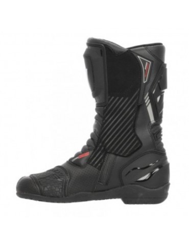 Botas ACERBIS Corkscrew negro. Botas homologado con aberturas laterales para facilitar su colocación y extracción, con doble cremallera y cierre de velcro. Su comodidad se ve reforzada por un forro impermeable y altamente transpirable, y zonas de ventilación estratégicamente ubicadas en el talón, la caña y la espinilla para una excelente transpirabilidad. Protección semirrígida en la espinilla/pantorrilla, el talón y la caña trasera, ubicada para disipar y absorber los impactos. Un deslizador reemplazable con tornillos proporciona una cubierta protectora alrededor de la parte superior exterior del calzado. Inserción de TPU en contacto con la palanca de cambios. La resistente suela cuenta con canales hidrodinámicos para facilitar la evacuación del agua.