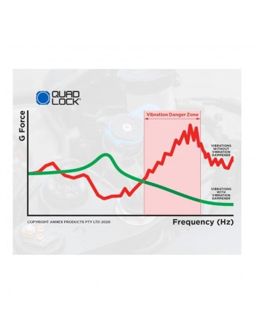 Compatible con todos los soportes y accesorios Quad Lock para motocicletas, el amortiguador de vibraciones Quad Lock reduce más del 90% de las vibraciones de alta frecuencia producidas por las motocicletas.