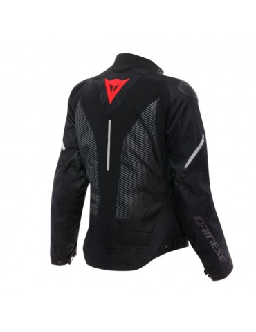 Veste DAINESE Super Sprint D-DRY Lady noir / noir / rouge lava. La veste Super Sprint D-Dry® est une veste de moto sportive pour femme au design distinctif inspiré des combinaisons de course emblématiques. Idéale pour les passionnées de vitesse, elle est dotée d'une membrane D-Dry® fixe et imperméable et d'un tissu polyester avec empiècements extensibles pour un ajustement parfait. Une doublure thermique amovible offre une chaleur optimale par tous les temps. Elle est idéale pour un usage quotidien ou pour rouler toute la journée.