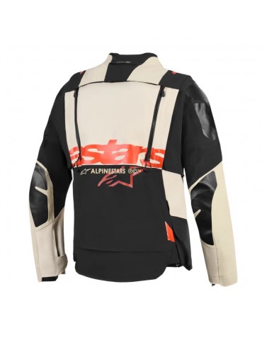 Sa conception modulaire permet une transformation rapide en veste respirante grâce à sa construction asymétrique à l'avant et à ses panneaux de ventilation sur la poitrine et le dos. La manche extérieure amovible est amovible par zip, révélant des manches intégrales en mesh pour un refroidissement optimal et une protection optimale contre les chocs.