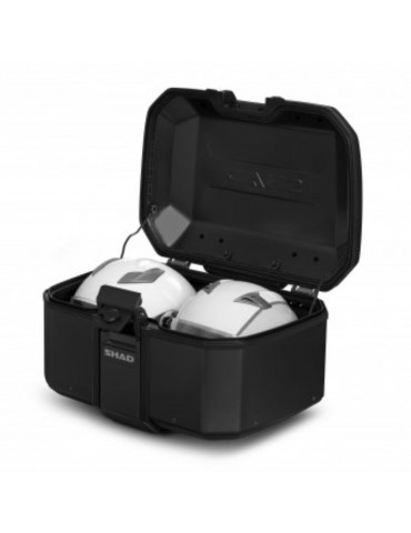 Coffre SHAD TR55 Terra noir pur. Le nouveau top case TR55 Pure Black, conçu et fabriqué à Barcelone, est également récompensé par les ABC Awards 2022, grâce à son design aux côtés légèrement incurvés qui minimise l'impact visuel sur la moto. L'optimisation des dimensions et l'utilisation d'alliages d'aluminium trempé de 1,2 mm permettent de réduire au maximum le poids de la valise, ce qui en fait, avec 5,4 kg, la valise en aluminium à 2 casques la plus légère du marché.