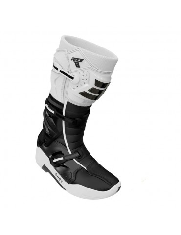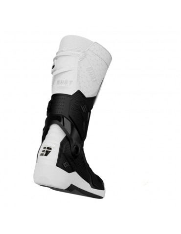 Bottes SHOT Race 8 blanc / noir / chrome. La Shot's Race 8 est une botte de motocross pour adultes avec une protection maléolaire D3O Aeromax. Elles sont légères, flexibles et suffisamment polyvalentes pour s'adapter à toutes les conditions.