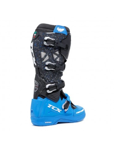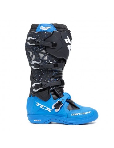 Bottes TCX Comp Evo 2 Michelin noir / bleu. Les chaussures TCX Comp Evo 2 Michelin sont équipées du nouveau système D.F.C. (Double Flex Control System) qui minimise le risque d'entorse de la cheville, tout en garantissant une flexibilité maximale. La doublure intérieure aide le pied à respirer et la double densité autour de la cheville en fait une botte extrêmement confortable. La semelle extérieure a été développée en collaboration avec Michelin ; elle se distingue par une excellente adhérence, une grande résistance à l'usure et à l'abrasion et, grâce à la conception renouvelée de sa bande de roulement, une grande évacuation de l'eau.