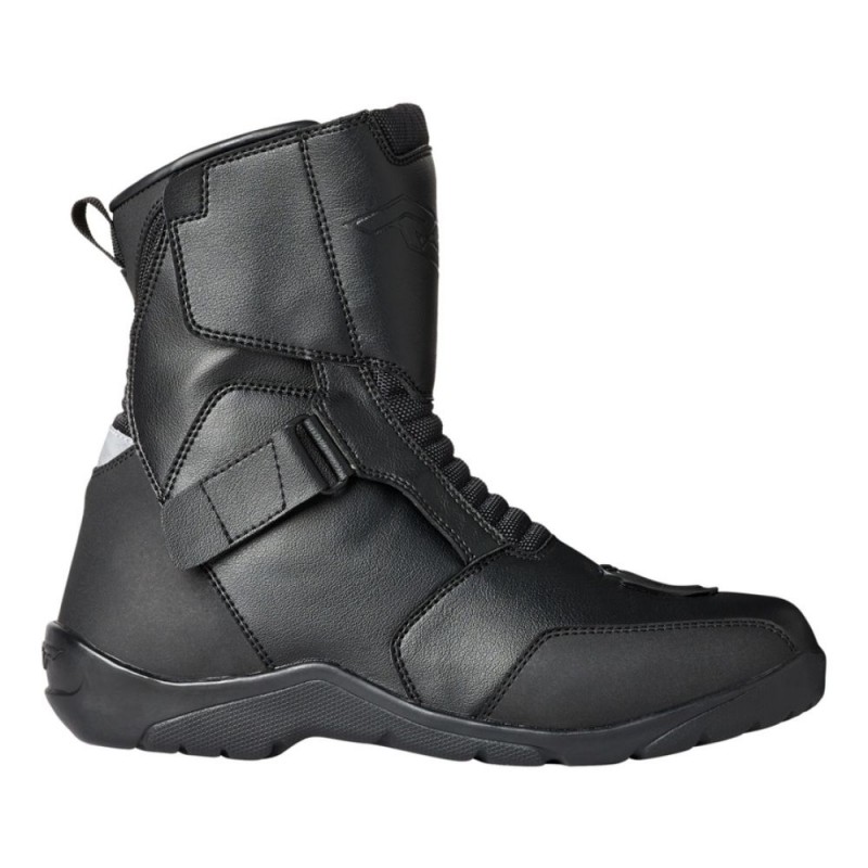Bottes RST Axiom MID noir. Bien qu'il s'agisse de notre chaussure de route d'entrée de gamme, la version mi-haute de l'Axiom originale possède toujours des caractéristiques pour une protection optimale du pied. Fabriquée en microfibre, la botte est dotée d'une membrane SinAqua imperméable qui garde le pied sec et respirant. En outre, la protection intégrée de la cheville et du talon et l'embout renforcé offrent une botte de moto très attrayante avec certification CE.