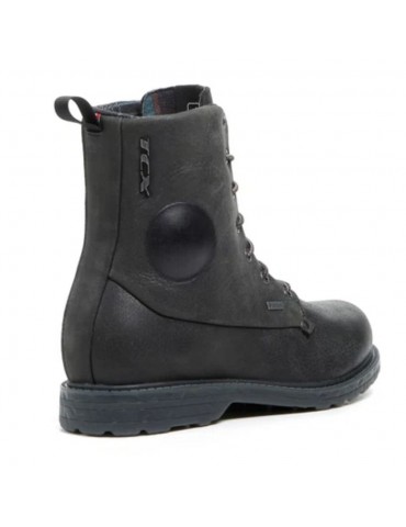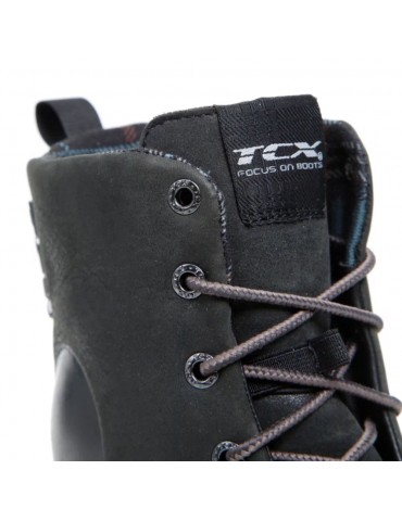 Bottes TCX Blend 2 GTX noir. Les bottes TCX Blend 2 Gore-Tex font exactement ce que leur nom indique : elles combinent style et protection dans un modèle polyvalent confortable et étanche qui peut être porté sur ou en dehors du vélo. Le cuir pleine fleur vintage associé à une membrane Gore-Tex Performance Comfort et à des renforts au niveau de la cheville et du talon vous offre un confort et une sécurité sans compromis, tout en conservant le look vintage des bottes de combat qui ne se démode jamais.