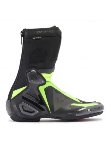 Son design iconique est associé à des solutions technologiques d'avant-garde, comme le système de contrôle de la distorsion axiale en carbone Kevlar, la construction IN avec velcro pour une connexion facile aux combinaisons de course Dainese, les curseurs en magnésium remplaçables et la semelle de course Groundtrax® orientée vers l'adhérence et la résistance à la chaleur.