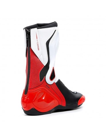 Bottes DAINESE Nexus 2 Air noir / blanc / rouge lava. Botte de sport en microfibre et tissu D-Stone. Les bottes Dainese Nexus 2 offrent des niveaux élevés de sécurité et de confort. Elles intègrent des protections et des renforts stratégiquement placés et disposent du système Axial Distortion Control, conçu pour réduire le risque de torsion du pied et le protéger contre les impacts.