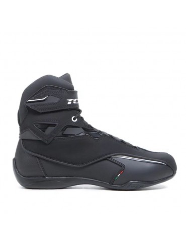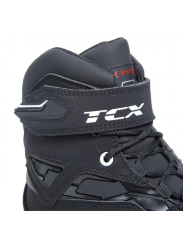 Chaussures TCX Zeta WP noir. Les chaussures de moto Zeta WP font partie de la compilation TCX Performance 24/7 2021. Ces chaussures offrent un style sportif subtil et sont parfaites pour les motards exigeants qui ont besoin de polyvalence et de protection mais aussi de confort et de liberté de mouvement. Ils sont fabriqués en microfibre de haute technologie, très résistante à l'abrasion et d'une légèreté incomparable. Les lacets et la bande velcro élastique sur la partie supérieure de la botte assurent un ajustement parfait. Avec des renforts placés stratégiquement, une semelle durable et une semelle intérieure Ortholite avec un amorti durable.