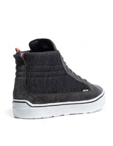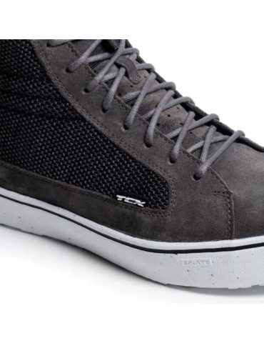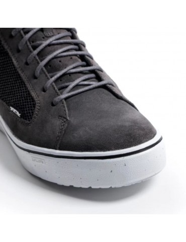 Chaussures TCX Street 3 Air gris / blanc. Fabriqué en cuir suédé et en tissu mesh respirant avec une doublure T-Dry imperméable pour garder vos pieds au sec à tout moment. La fermeture à lacets est dotée d'une sangle flexible où vous pouvez ranger les lacets pour éviter qu'ils ne se prennent dans les repose-pieds de la moto. La TCX Street tres Air dispose d'une protection D3O de nouvelle génération sur la malléole et de protections supplémentaires au niveau des orteils et du talon. La semelle extérieure Groundtrax est conçue pour assurer la stabilité, l'adhérence et la traction sur et hors du vélo. La semelle intermédiaire est dotée de l'insert Zplate pour maintenir une flexibilité adéquate de la chaussure et assure également une rigidité transversale correcte pour protéger le pied en cas de chute. En somme, une chaussure qui vous permettra de rouler en toute sécurité et avec style, 24 heures sur 24, sept jours sur sept.