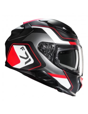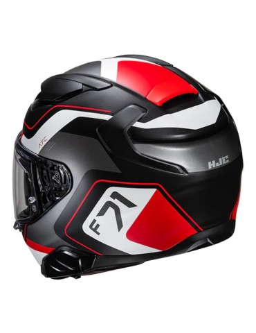 Casque HJC F71 Arcan MC1SF. Le HJC F71 repousse les limites du modèle Sport-Touring avec sa nouvelle coque au design épuré. Fabriqué en fibre de verre composite, il est disponible en 3 tailles de coques extérieures. Les évents supérieurs réarrangés avec des évents élargis permettent une meilleure prise d'air et une meilleure ventilation. Visière et pare-soleil (HJ-V12 et Pinlock-ready) sont également inclus. La visière transparente HJ-38 est dotée d'un nouveau système de verrouillage PE (push/pull) pour une sécurité accrue, tout en étant facile à utiliser avec des gants.