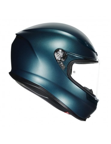 Casque AGV K6 Solid MPLK petrolio mat. Le K6 est le nouveau casque intégral d'AGV qui intègre les meilleures caractéristiques des segments sport et tourisme. Extrêmement polyvalent, il convient à toutes sortes de randonnées sur des motos sportives, naked ou sport-touring. Fabriqué en fibre de carbone et en aramide, il présente un design très moderne et aérodynamique. Il intègre un système de ventilation efficace et est prédisposé pour le montage du système de communication ARK.