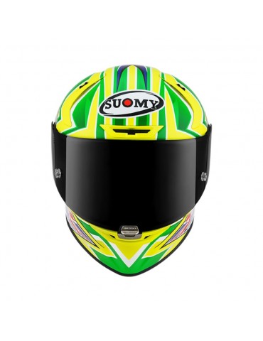 Casque SUOMY SR-GP Réplique Top Racer. Le nouveau casque intégral SR-GP est le modèle de course haut de gamme de Suomy. Développé avec la contribution de pilotes MotoGP tels que Dovizioso, Bagnaia, Bulega Bastianini et Fenati, il a permis de réaliser un casque aux possibilités jamais vues auparavant. Développé en soufflerie, il atteint un facteur aérodynamique étonnant (Cx 0,39). Son champ de vision vertical de 92º et 210º en périphérique, une ventilation efficace composée de 5 points d'entrée avec extraction de l'air chaud par l'effet Venturi créé par le spoiler arrière et le tissu intérieur FIR hautement respirant font de ce casque un point de référence sur la planète course. Coque extérieure avec 4 tailles pour un ajustement parfait, fabriquée en TRICARBOCO (carbone, fibre de verre et aramide), impressionnante de légèreté et de résistance.