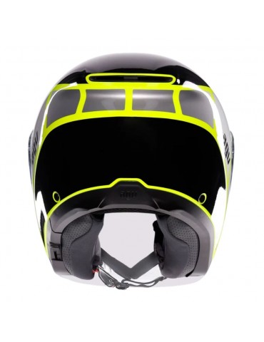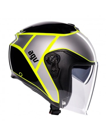 Casque AGV Irides E2206 Davao noir / gris / jaune fluor. IRIDES est le nouveau casque ouvert d'AGV avec homologation ECE2206, équipé d'une visière Pinlock™ 70 Ready avec fermeture magnétique. Il offre un haut niveau de protection et de confort pour la conduite urbaine au quotidien. Un casque au design sobre et moderne, très soigné dans les détails de la plaque latérale, doté d'une visière allongée comme protection, équipée d'un mécanisme de fermeture magnétique VMS (Visor Magnetic System), pour offrir une stabilité et un confort maximum même à grande vitesse. La visière, avec pré-installation de la lentille antibuée Pinlock® 70 (en accessoire) et le pare-soleil réglable, garantissent une excellente visibilité dans toutes les conditions, aussi bien par temps ensoleillé que par temps chaud, lorsque la différence de température entre l'environnement et l'intérieur du casque peut entraîner une formation de buée gênante. Le confort thermique du casque est garanti par la prise d'air supérieure réglable et l'extracteur arrière, qui facilitent l'échange entre l'air chaud à l'intérieur du casque et l'air provenant de l'extérieur. La configuration interne de l'Irides garantit une excellente personnalisation de l'ajustement.