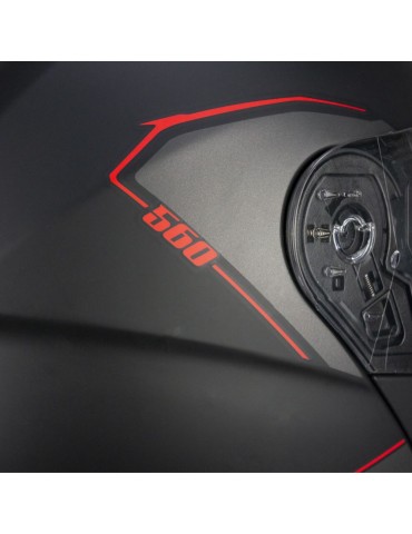 L'écran est conçu pour accueillir des lentilles Pinlock et le 100% MAX VISION PINLOCK 70 est inclus dans l'ensemble. Le 560 est équipé d'un système de ventilation AIR STREAM SYSTEM avec deux zones d'admission et une zone d'échappement. La double homologation P/J permet à l'utilisateur de rouler en toute sécurité avec le casque ouvert ou fermé.