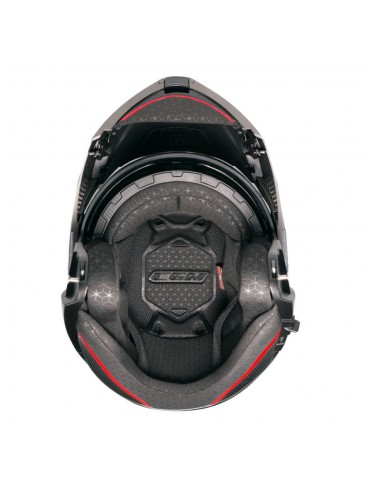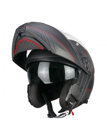 Casque CGM 560G Mad Ride noir / mat rouge. Le 560 MAD est le nouveau CGM modulaire haut de gamme. Avec une coque extérieure en deux tailles, en FIBERGLAS COMPOSITE HD ou en CARBONE (version MAD PRO), il garantit une sécurité maximale pour un poids minimal. Il allie style, confort et performance dans un ensemble modulaire complet avec des technologies et des solutions conçues pour faire du voyage une pure émotion. Équipé d'un écran avec traitement anti-rayures, inclinable, verrouillable en position fermée, avec un profil supérieur aérodynamique et un pare-soleil rétractable.