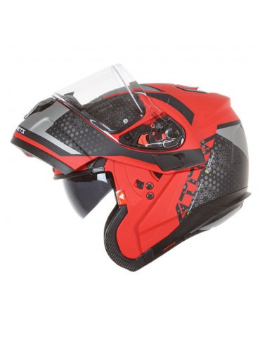 Casque MT FU401SV Atom SV Adventure A5 rouge mat. Le casque modulaire le plus polyvalent et le plus accessible. Un vrai multitalent pour tous les jours. La polyvalence du MT ATOM vous permettra de passer des rues de votre ville à votre route préférée en une seconde. Grâce à sa structure modulaire, le confort sera toujours votre compagnon de voyage où que vous alliez.