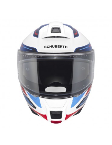 Casque SCHUBERTH C5 Omega blanc brillant. Le SCHUBERTH C5 est la dernière génération de la collection de casques à bascule de SCHUBERTH. Il est le premier casque à être homologué selon la nouvelle norme ECE-R 22.06 et possède également une double homologation P/J.