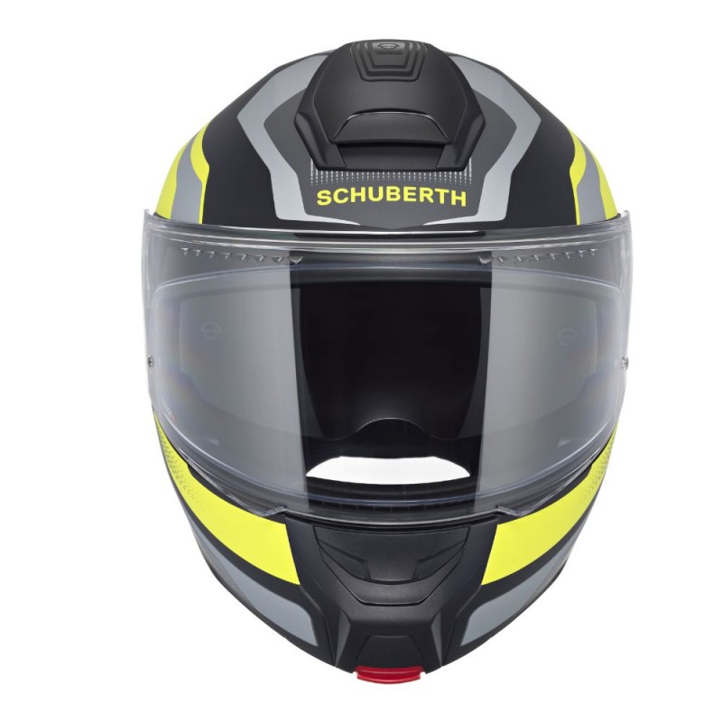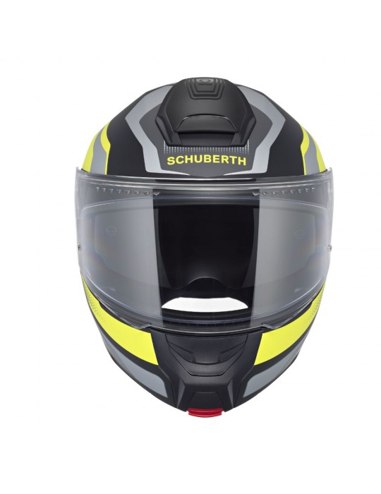 Casque SCHUBERTH Concept Tracer jaune mat. Ce modèle est le dernier-né de la gamme de casques modulables SCHUBERTH. Il bénéficie d'une double homologation ECE-R 22.06 P/J et est le premier casque homologué pour une utilisation avec des intercoms universels (homologation ECE-R 22.06 UA). Que ce soit pour les longs trajets ou vos déplacements quotidiens, le CONCEPT offre un confort exceptionnel, une sécurité optimale et une conception légère.