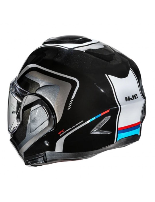 Casque HJC F100 Reff MC21. Le casque HJC F100 est un casque modulaire ou relevable au design et à la forme fluides, doté d'une coque en fibre de verre AFC légère et très résistante. Il est doté d'un système de ventilation avancé, avec des entrées d'air sur le front et le menton et deux extracteurs d'air à l'arrière. L'intérieur, avec la couronne et les coussinets de joues profilés en 3D, est fabriqué en tissu hypoallergénique, respirant, amovible et lavable. De plus, ce casque est doté d'un système de fermeture à boucle micrométrique.