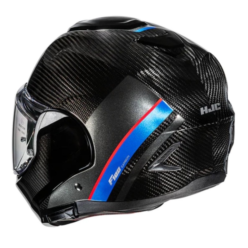 Casque HJC F100 Carbon Stan MC21. Le F100 Carbon est un casque léger et résistant avec une coque en fibre de carbone, une ventilation ACS avancée et un écran solaire foncé intégré. Il comprend une visière HJ-45 avec une protection UV à 99 % et est compatible avec Pinlock®. Son intérieur est amovible, lavable et adapté aux lunettes. Il est équipé d'une boucle micro-ajustable pour plus de sécurité et de confort.