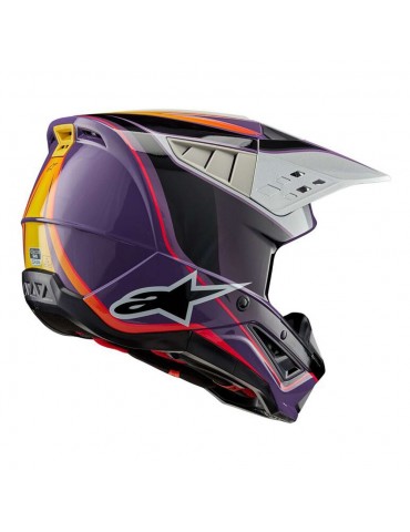 Casque ALPINESTARS S-M5 Sail violet / noir / argent brillant. Le S-M5 d'Alpinestars est un casque de motocross d'entrée de gamme doté d'une coque multicouche thermo-injectée. Il offre un large champ de vision, un système de ventilation efficace et des lignes fluides et dynamiques. Le S-M5 répond aux exigences de la norme ECE 22.06.